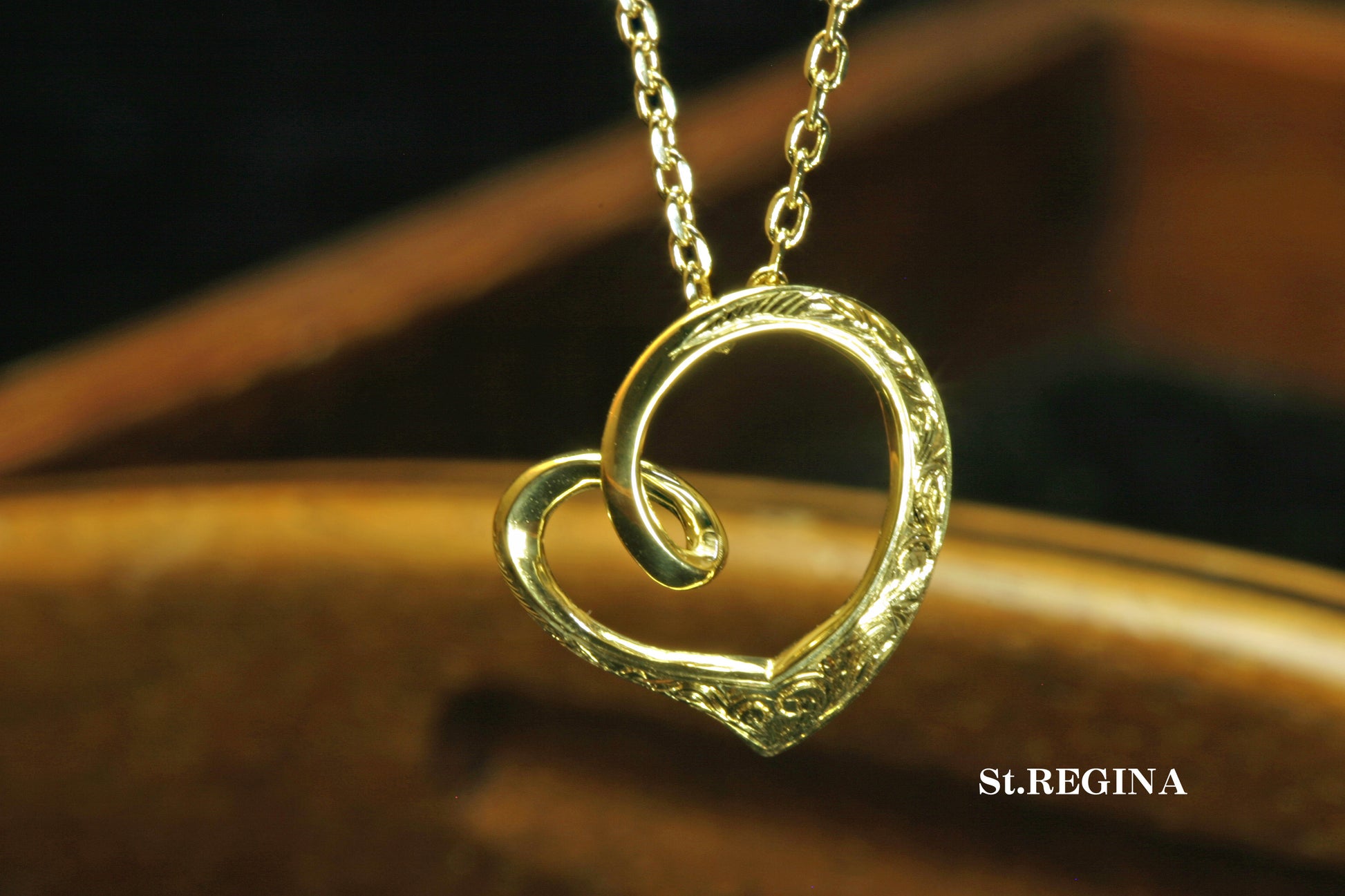 綺麗なオープンハートに唐草彫りを施した優しい雰囲気のペンダントです。