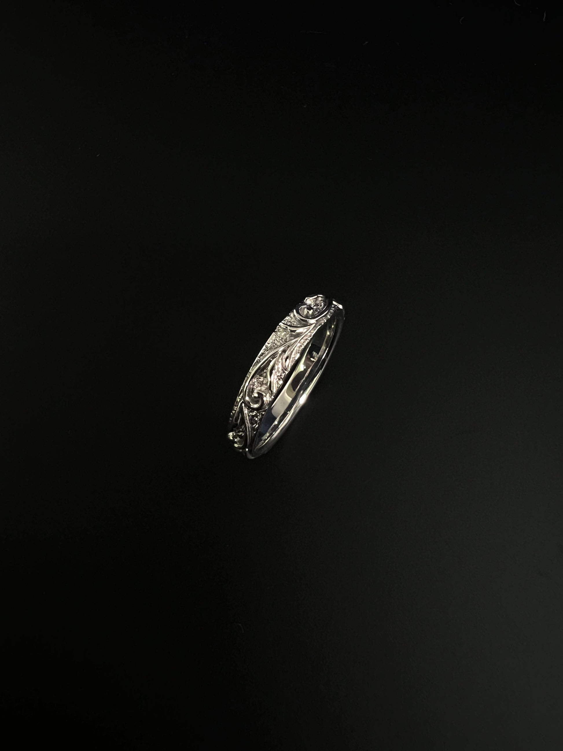 リングは唐草部分を浮き彫りで表現した立体的なフォルムになっていて手元に存在感を与えます。