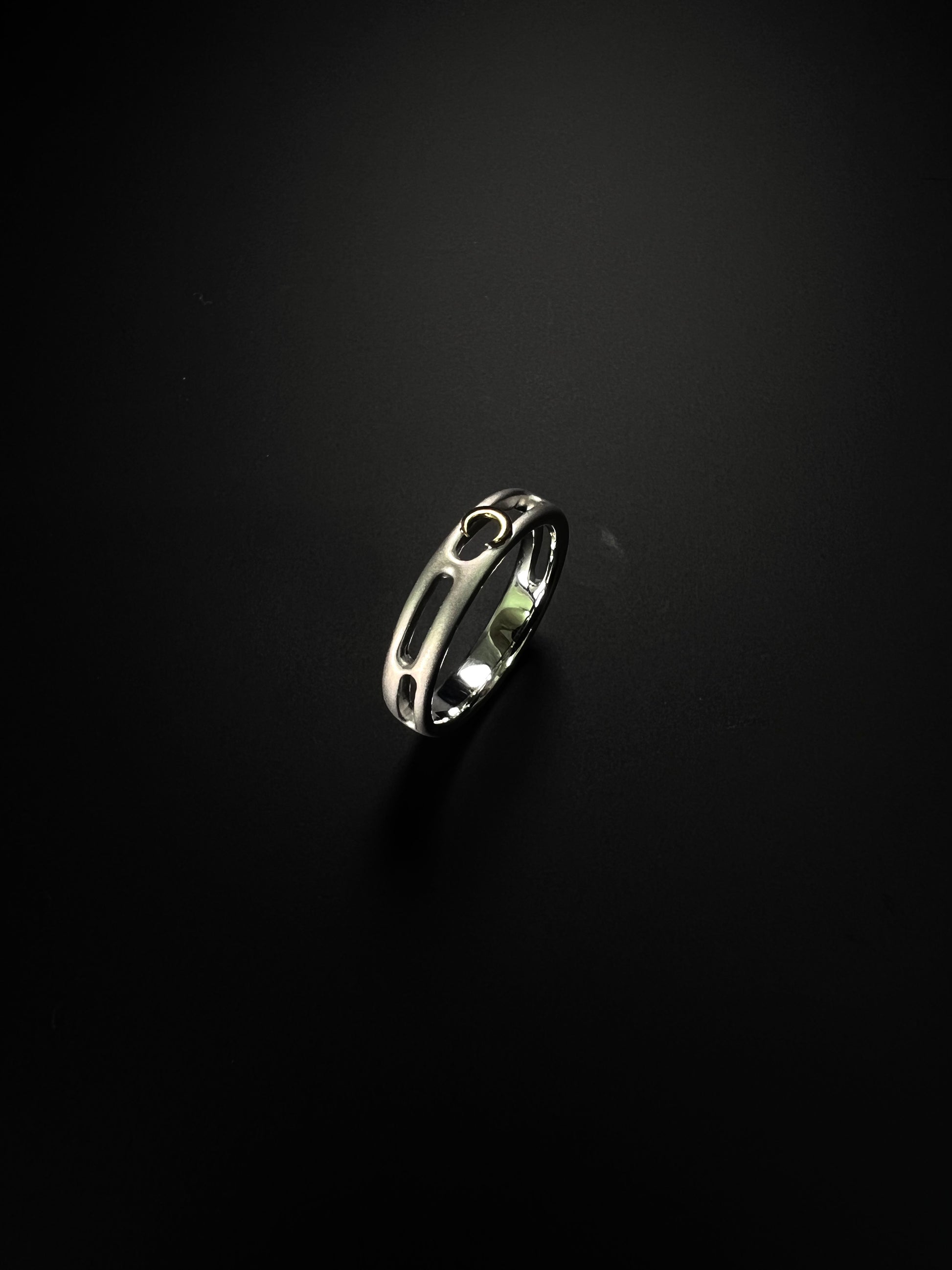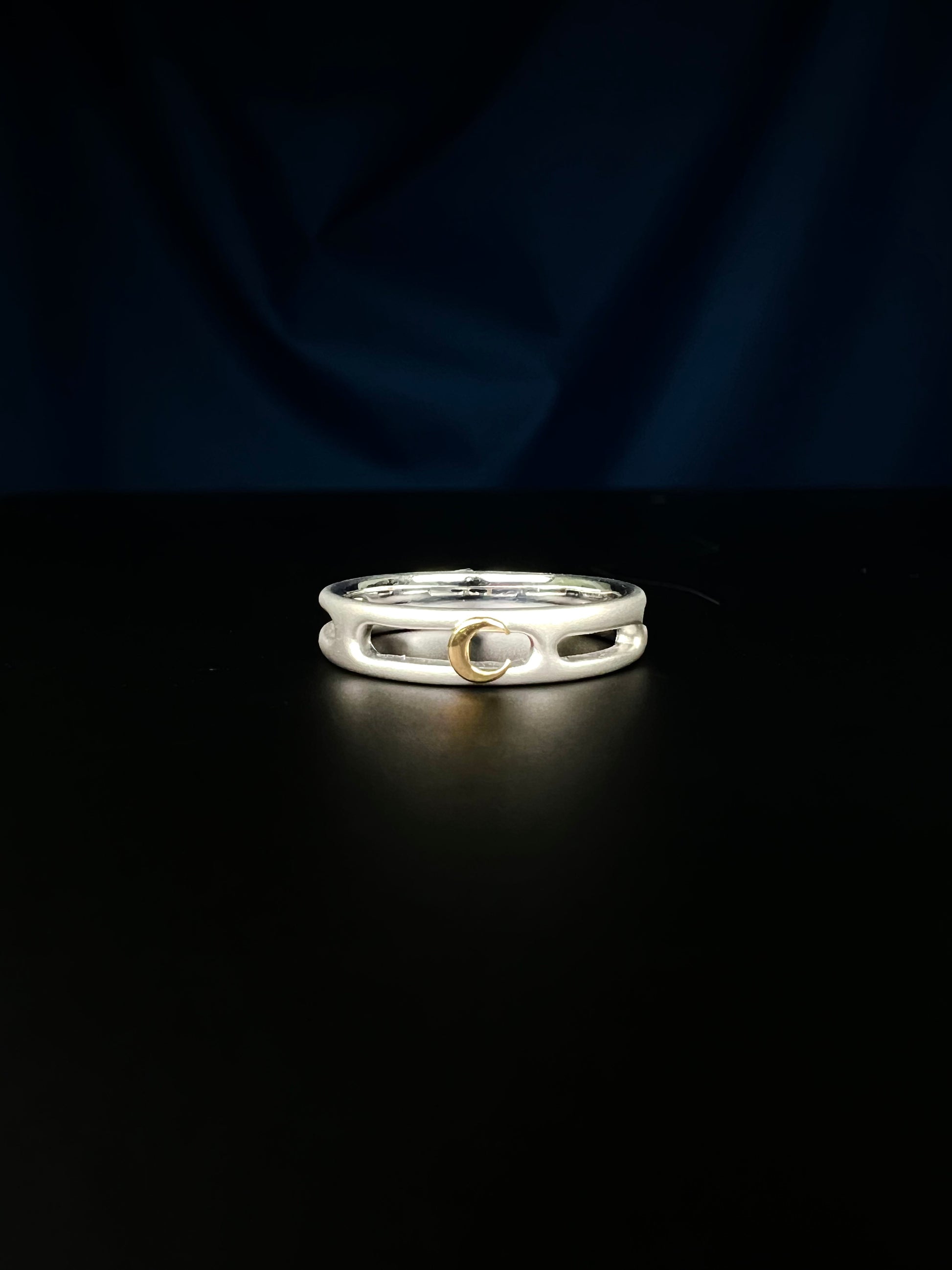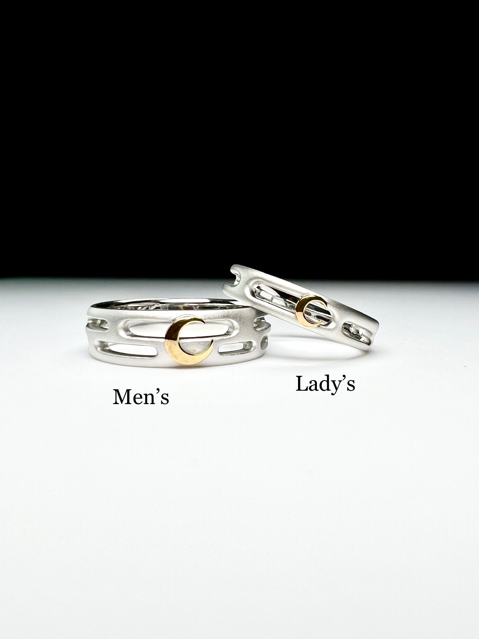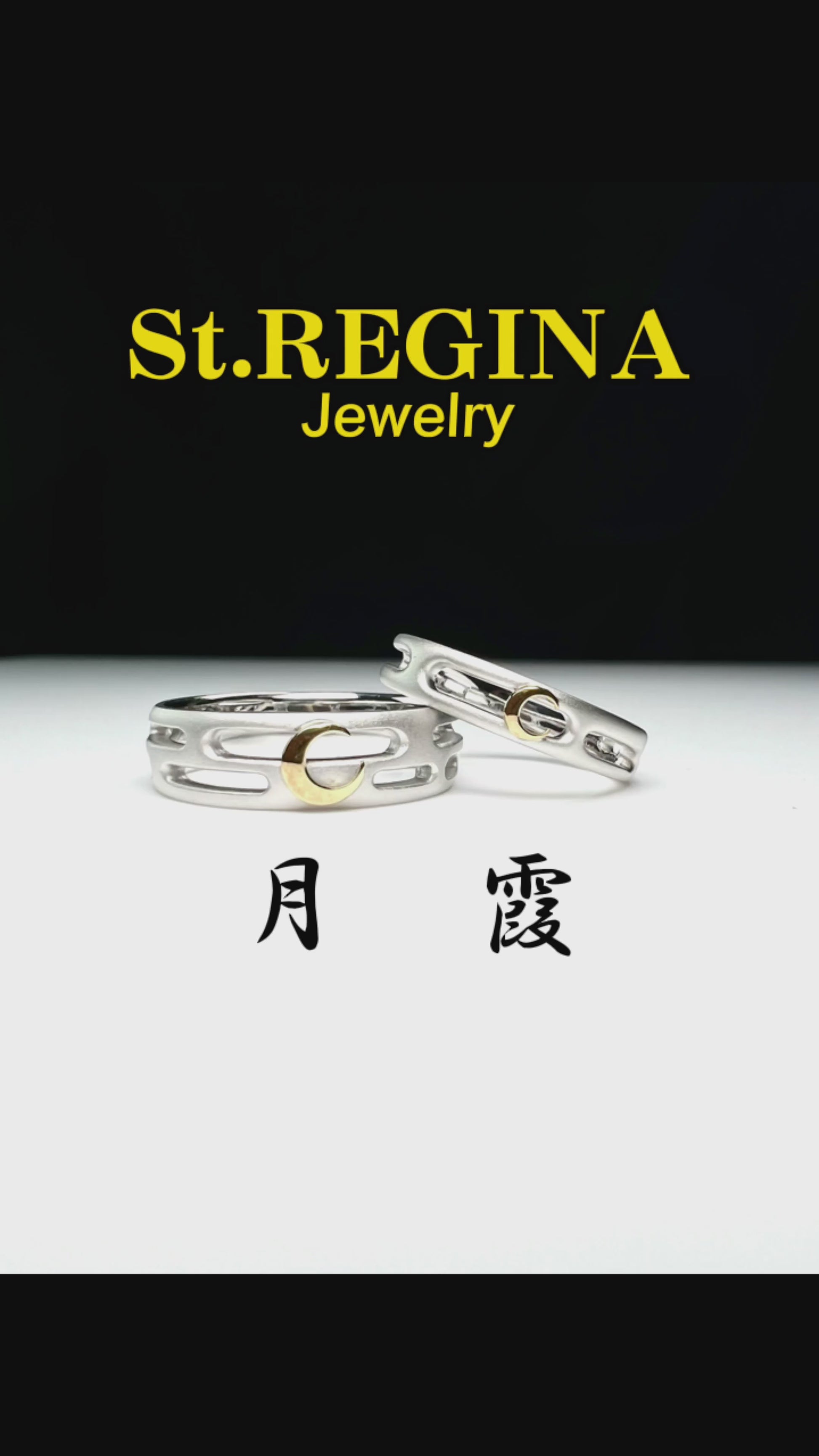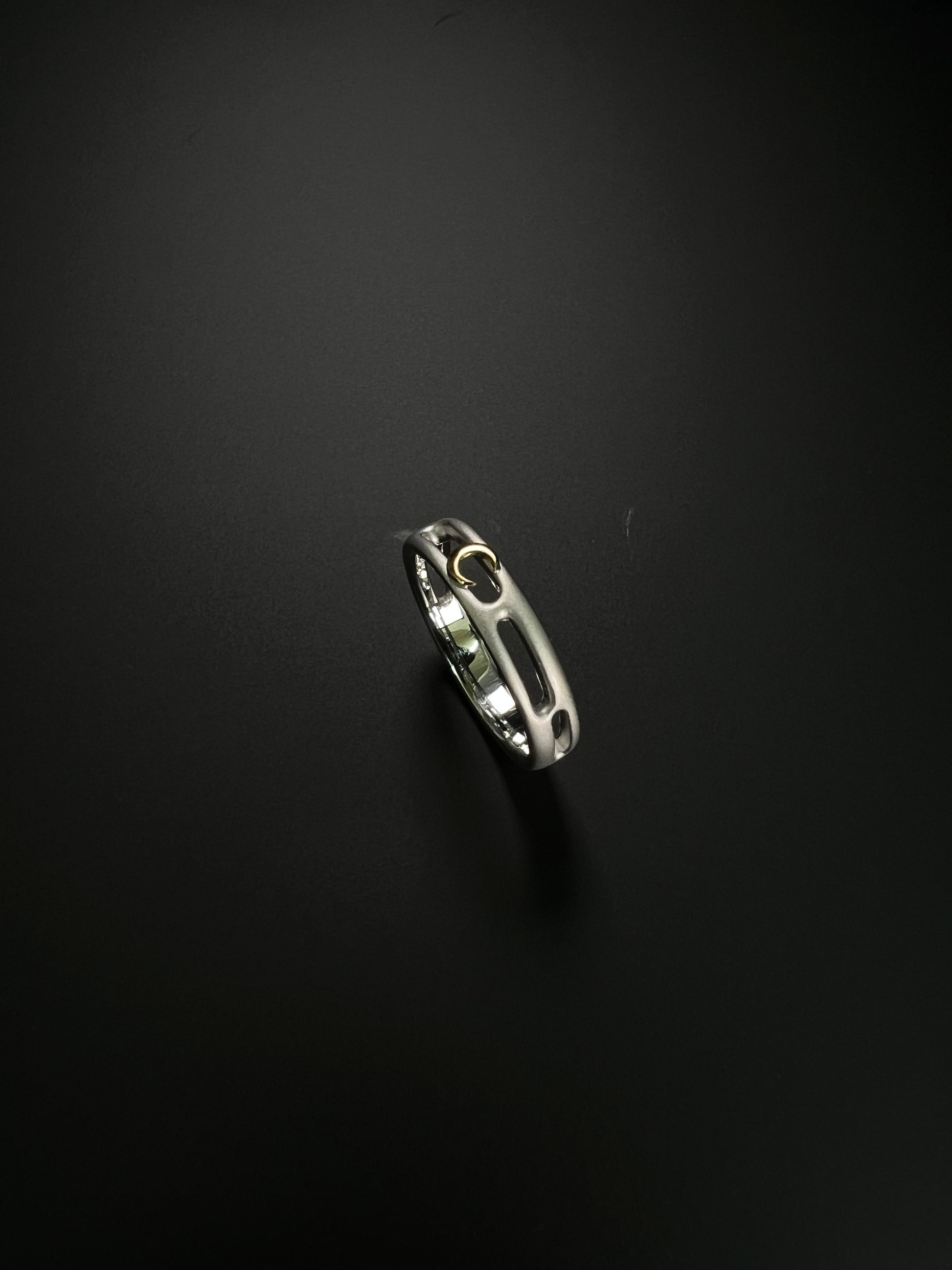 リングはかすみ部分艶消し仕上げを施し、月は光り輝くゴールドで仕上げてあります。とても和の雰囲気を感じさせる作品になっています。