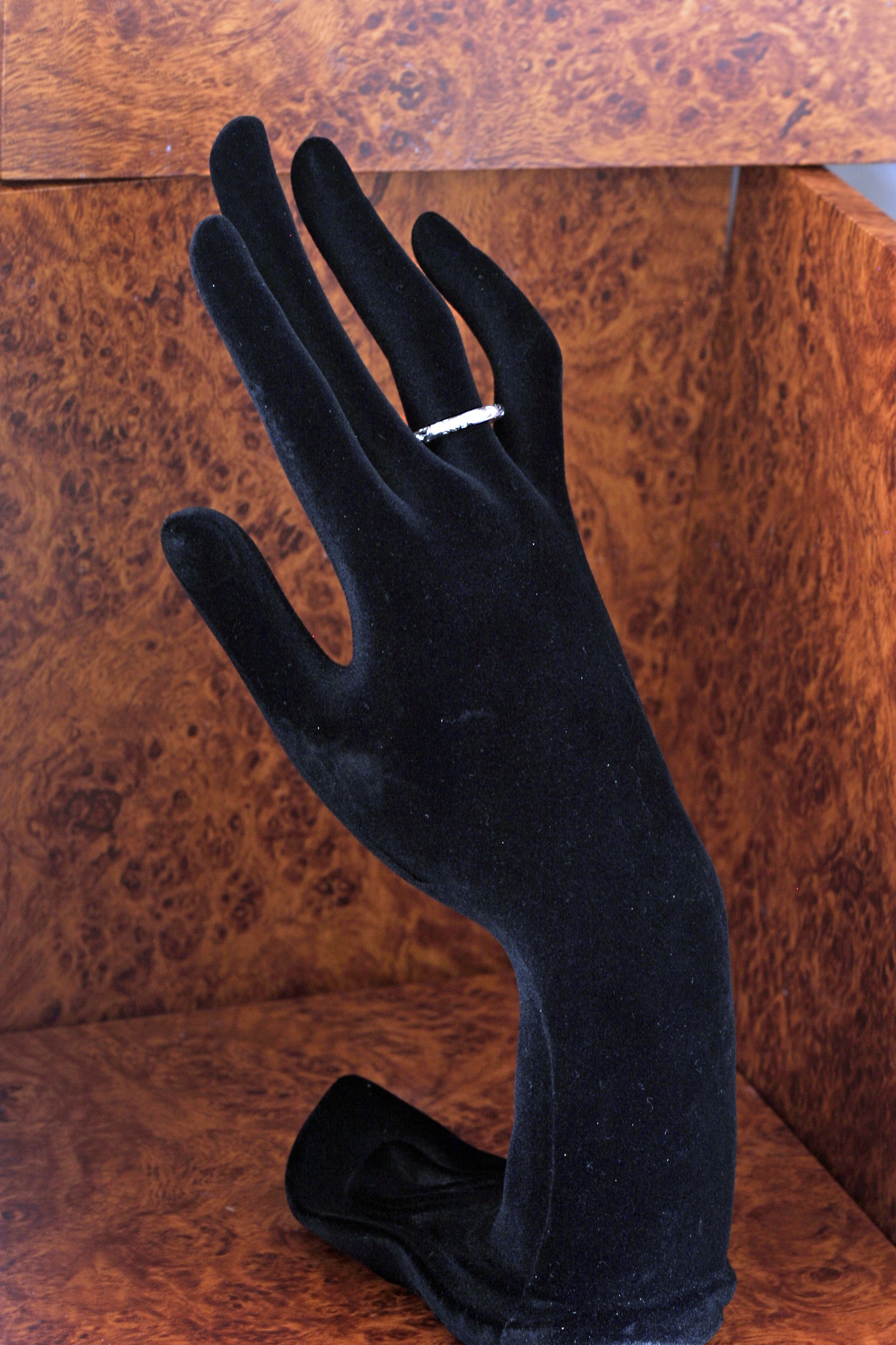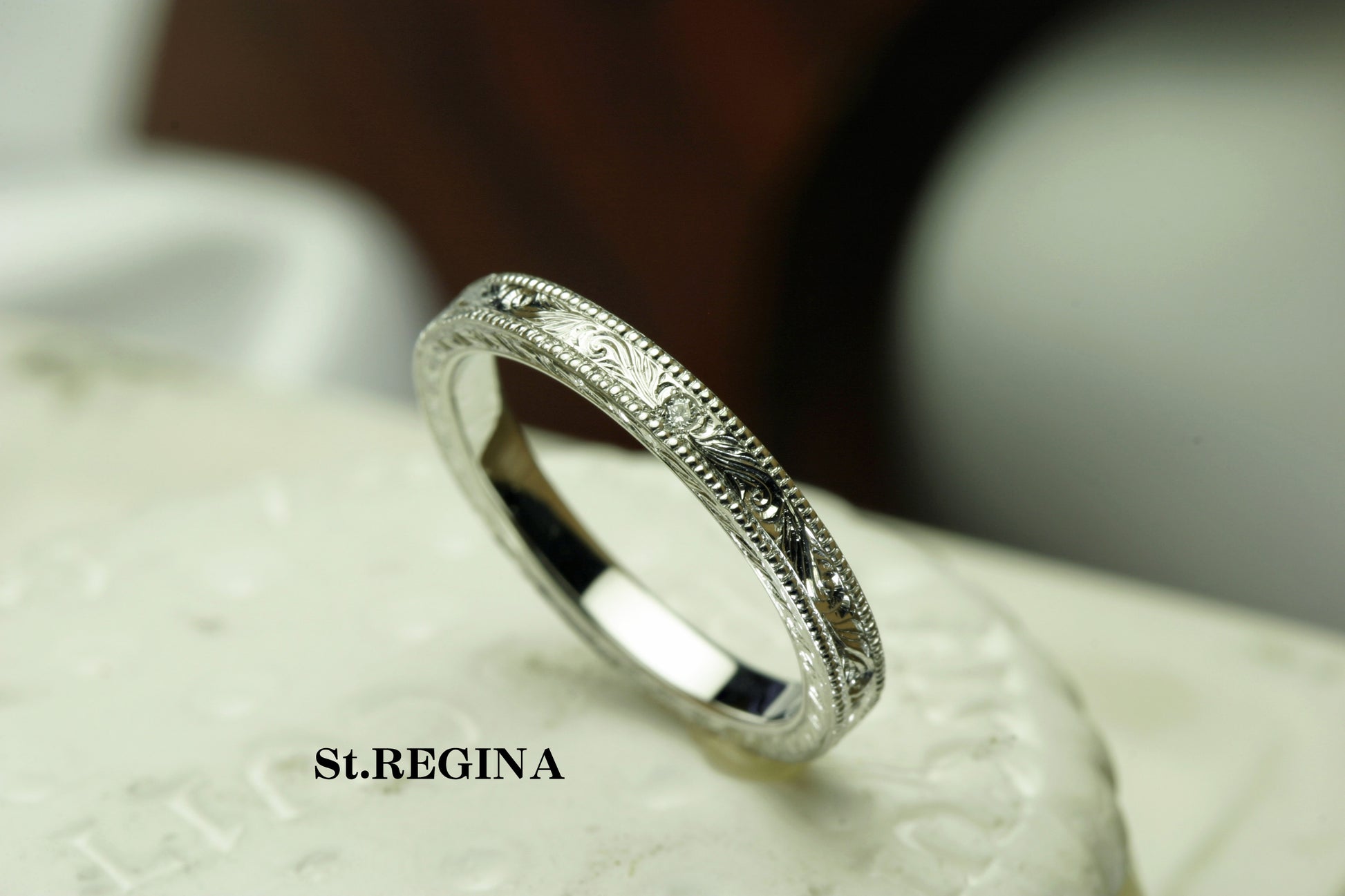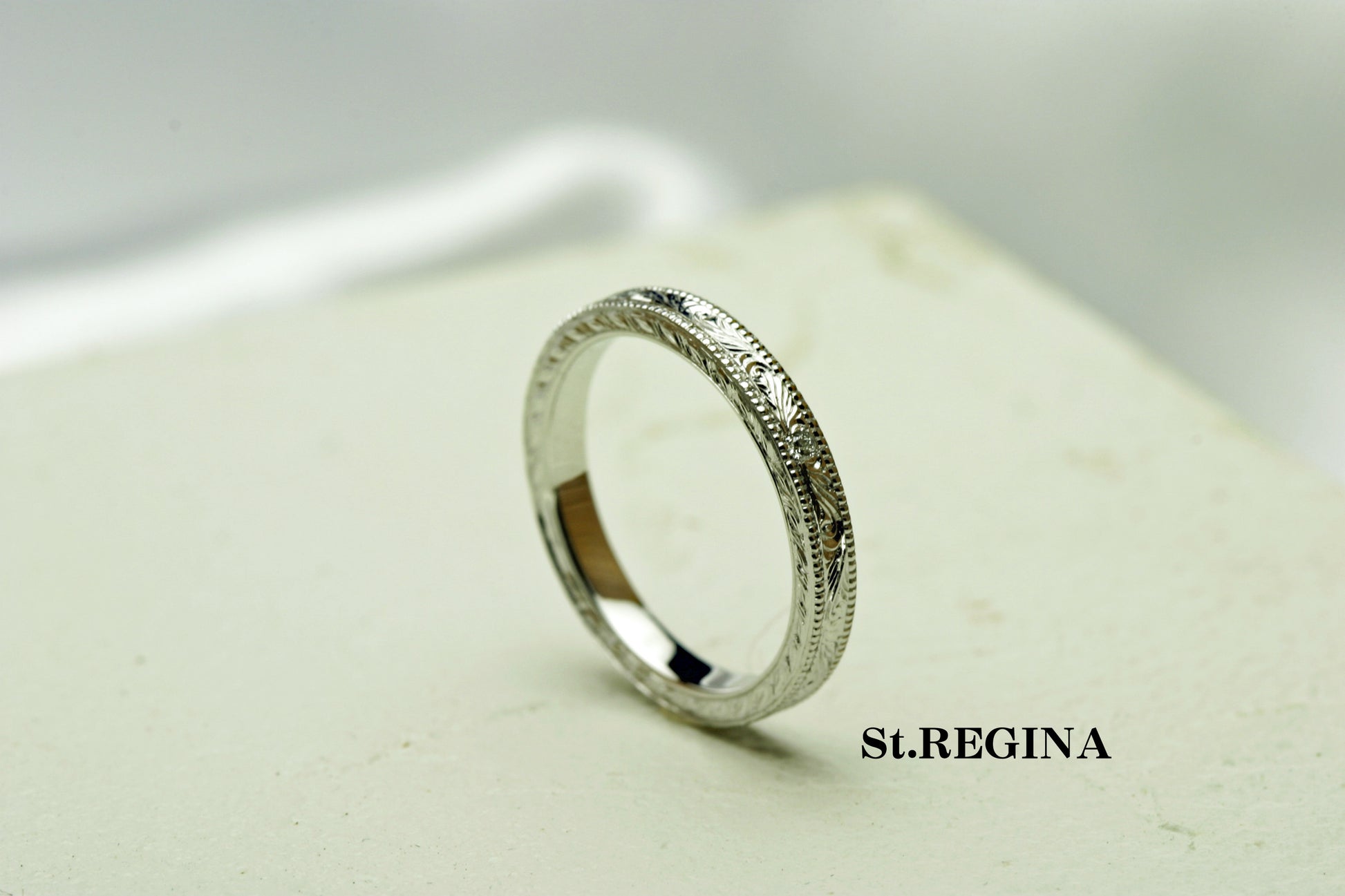 最もスタンダードな平打ちリングに細かな細工をして仕上げた作品です。